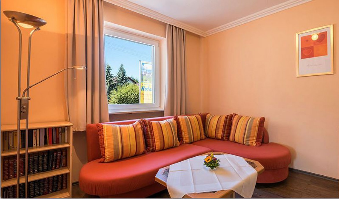 Das Familienzimmer ist ca. 32 m² gross. Es liegt Richtung Südseite und verfügt über einen Balkon mit herrlichem Blick auf die Allgäuer Bergwelt und die Zugspitze. Maximale Belegung 2 Erwachsene und 2 Kinder möglich.